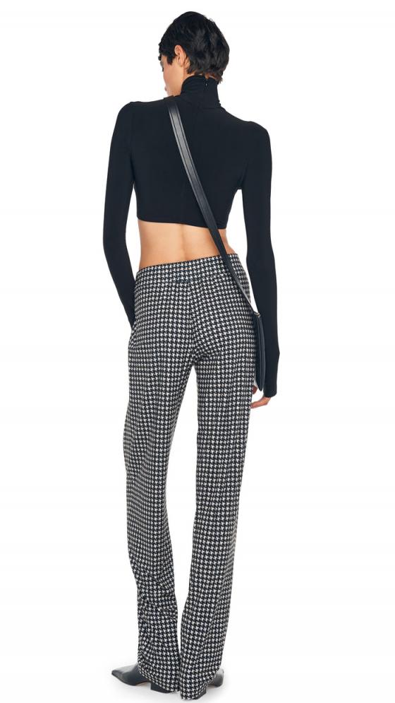 LOW RISE PLEATED TROUSER Low rise Pleated front Pull on Tapered leg Have a question You may find an answer in our FAQs. FABRIC 4-way stretch Poly Lycra.Composition: 95% polyester 5% spandex CARE INSTRUCTIONS For the long life of this easy care style, please follow the directions: wash in cold water with like colors, only non-chlorine bleach as needed, lay flat to dry, cool iron only, do not dry clean. Tip: to shorten the length, use a pair of scissors (Norma’s favorite is the Tru Red Stainless Steel scissors) to cut off the excessive length.Watch tutorial