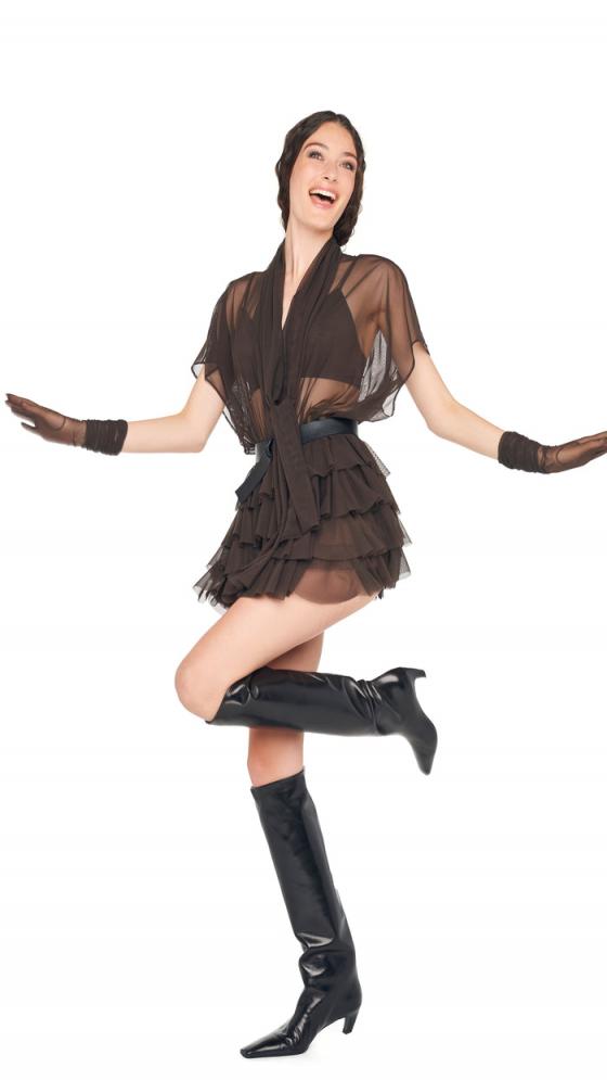LAUREN MINI DRESS W/ BOW Semi-sheer Sleeveless Relaxed fit Velcro closure Tiered ruffle bottom Tie-able bow collar Have a question You may find an answer in our FAQs. FABRIC Mesh.Composition: 82% nylon 18% spandex CARE INSTRUCTIONS For the long life of this easy care style, please follow the directions: wash in cold water with like colors, do not bleach, tumble dry low, remove promptly, cool iron only.